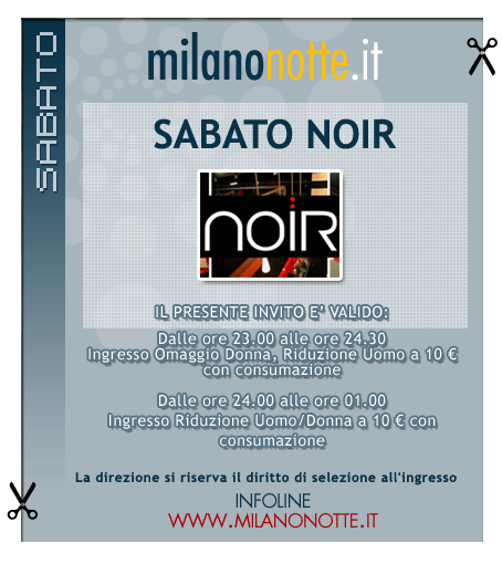 Dalle 23.00 alle 01.00 Riduzione Uomo 16€, Donna 14€ (con consumazione) con MILANONOTTE